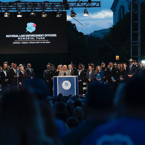 CEO of the National Law Enforcement Officers Memorial Fund, Marcia Ferranto addressed over 30,000 attendees at the 34th Annual Candlelight Vigil, to honor the service and sacrifice of Americas law enforcement professionals and their families.