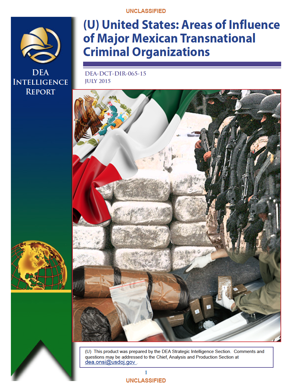 United States: Areas of Influence of Major Mexican Transnational Criminal Organizations