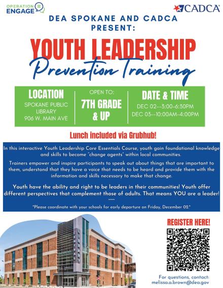 Trainers will teach youth in 7th grade and up how to speak up and become leaders. Registration link to follow.
