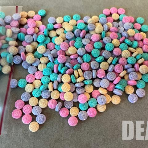 Fentanilo arcoíris: pastillas y polvo de fentanilo que vienen en una variedad de colores brillantes, formas y tamaños.