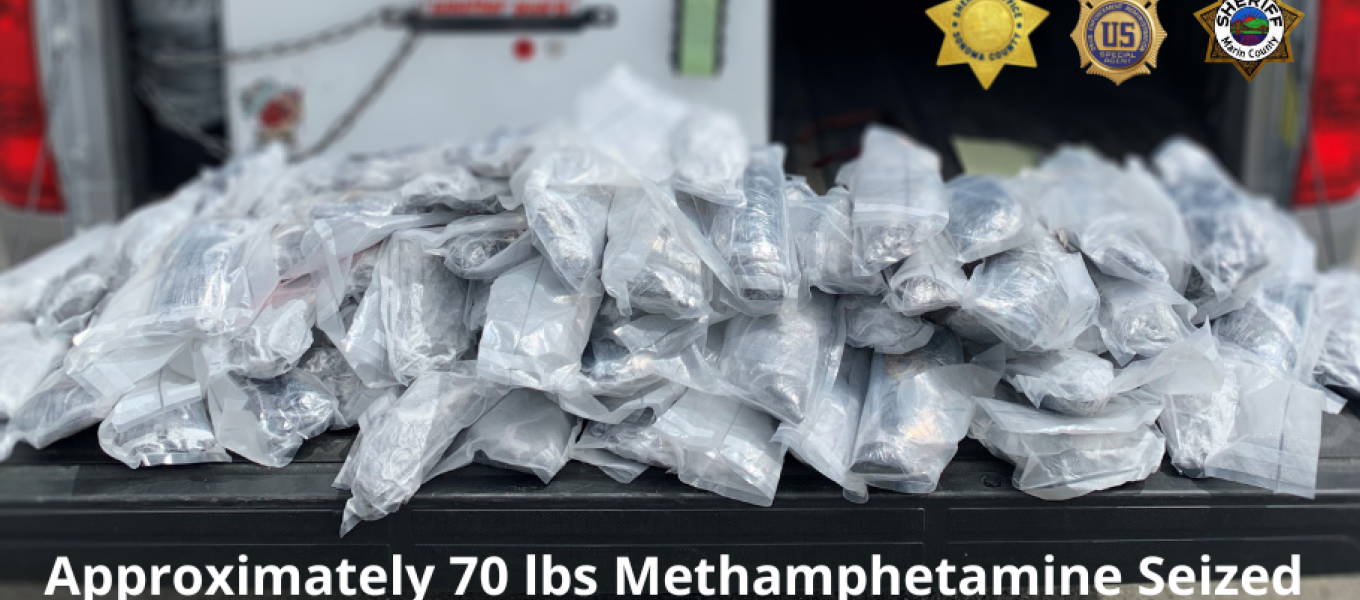 SANTA ROSA, Calif. – The DEA Santa Rosa Resident Office, Sonoma County Sheriff’s Office Property Crimes and Narcotics Unit and the Marin County Sheriff's Office, Specialized Investigative Unit, concluded a 16-month long investigation into a drug trafficking organization allegedly distributing large amounts of methamphetamine in the region. During the course of the case law enforcement seized approximately 140 lbs. of methamphetamine destined for the Santa Rosa area believed to be supplied by traffickers from Southern California and approximately $40,000 in U.S. Currency.