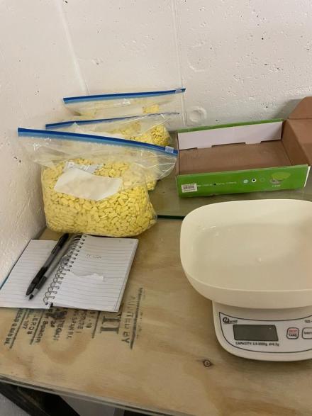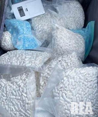In the Bronx on April 6, 2024, as part of an ongoing investigation involving a network of drug traffickers operating large-scale illegal pill pressing operations throughout New York City, the New York Field Division along with the HSI El Dorado Task Force, seized two industrial-scale pill presses, approximately 130,000 pills, approximately three kilograms of a powder containing fentanyl, approximately 20 pounds of powdered narcotics containing methamphetamine, and approximately 3.5 pounds of suspected crystalized methamphetamine. Two suspects were also arrested.