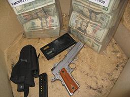 Hanley was in possession of keys to another apartment across the street at 1502 Rosedale Avenue. Agents and officers searched that apartment pursuant to a search warrant. Inside a hidden compartment in a TV stand they found approximately $160,000 in cash and a loaded 9mm Taurus 1911 firearm that was reported stolen in Pennsylvania. Also seized were drug packaging materials and a money counter.