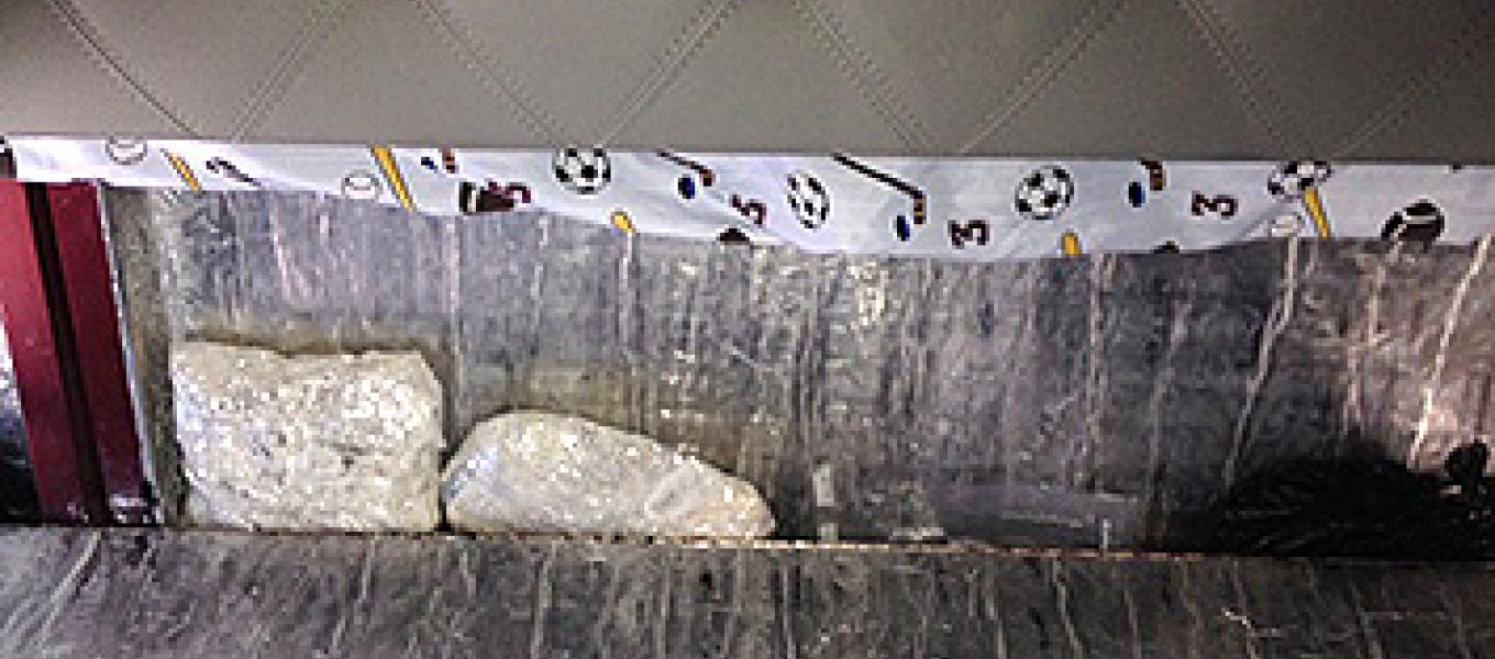 As a result of a month-long investigation, on August 26, 2014 members of DETF Group T-42 arrested Queens trucking company owner Dorian Cabrera and a truck driver Jeen Blake. Agents seized approximately 15 (33 pounds) of heroin from a tractor trailer and more than $300,000 cash. Agents found the heroin concealed in a “trap”, or hidden compartment, on the back wall of the truck’s cab. The majority of the heroin was formed into rectangular kilos, while two were formed in the shape of shoe soles.