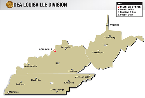 The DEA will establish the Louisville Field Division - its 22nd division office in the United States - on Jan. 1, 2018. It will include Kentucky, Tennessee, and West Virginia. This action converts the existing Louisville District Office into a field division in an effort to enhance DEA enforcement efforts within the Appalachian mountain region and unify drug trafficking investigations under a single Special Agent in Charge. DEA anticipates that this change will produce more effective investigations on heroin, fentanyl and prescription opioid trafficking, all of which have a significant impact on the region. The division will also better align DEA with the U.S. Attorney’s Office districts in those areas, similar to current ATF and FBI offices, and also to the Appalachia High Intensity Drug Trafficking (HIDTA) Program.