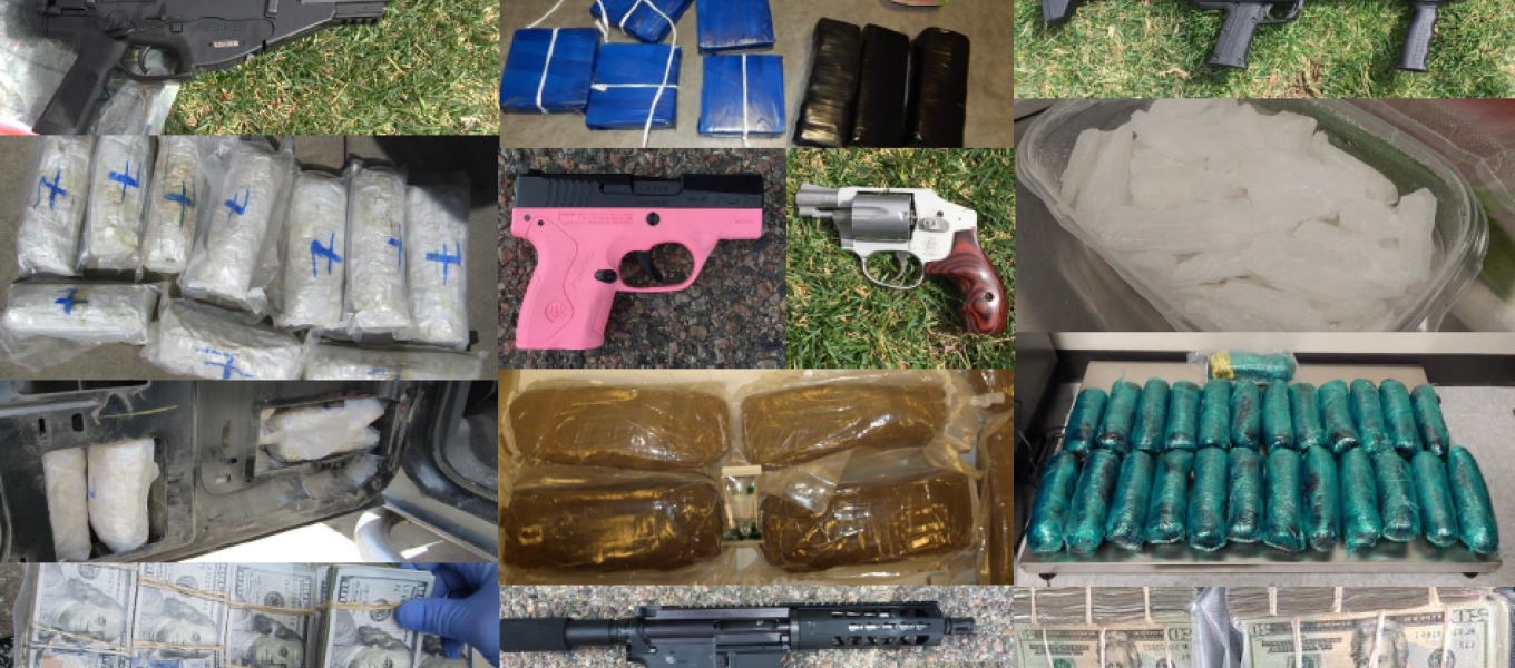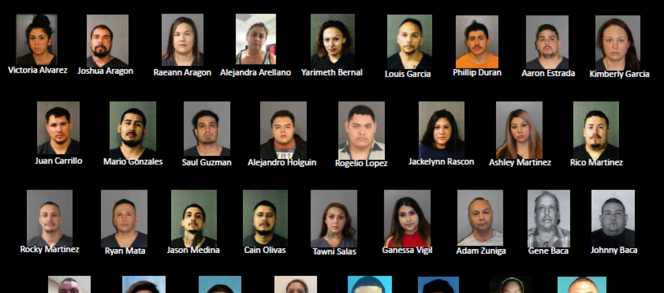The results of this investigation led to the indictment and/or arrest by the Colorado State Attorney General’s office and by the Pueblo County District Attorney of 65 targets of investigation. To date, 40 of the 65 people charged have been arrested. This investigation resulted in the seizure of monetary assets valued at $1.25 million, seven vehicles, 31 firearms, 126.6 pounds (57.4 kilograms) of methamphetamine, 56.2 pounds (25.5 kilograms) of heroin, and 33.7 pounds (15.3 kilograms) of cocaine.
