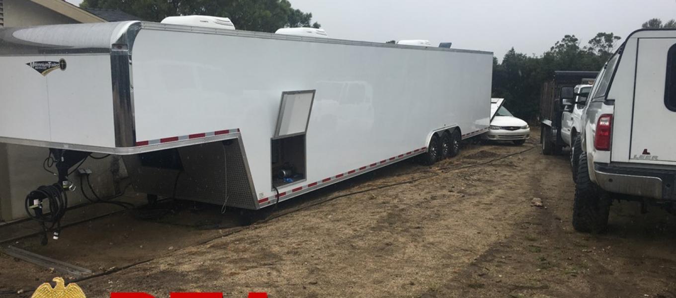 WARNER SPRINGS, Calif. – Yesterday the DEA’s Narcotic Task Force executed a state search warrant at 30570 Chihuahua Valley Road, Warner Springs, Calif. Agents uncovered a sophisticated butane hash oil extraction lab inside three trailers on the property. In addition to extracting hash oil, the lab operators were also refining the hash oil and packaging it into vape cartridges for consumption.