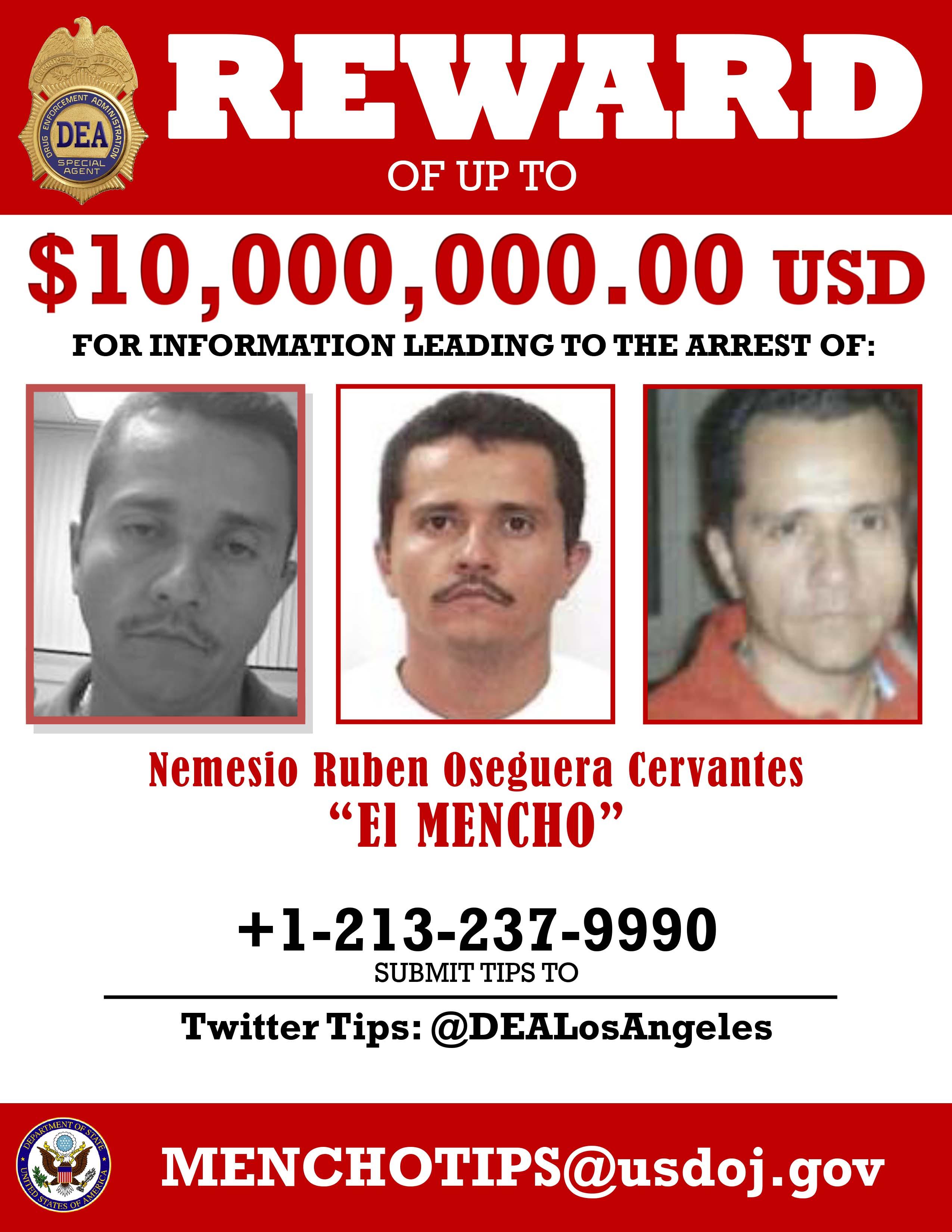 Additionally, DEA has worked with its interagency partners to apply further pressure to CJNG. The U.S. Department of Treasury has designated El Mencho as a “specially designated narcotics trafficker” pursuant to the Foreign Narcotics Kingpin Designation Act, and the U.S. Department of State has issued one of the largest narcotics rewards ever – $10 million – for information leading to the arrest of El Mencho.