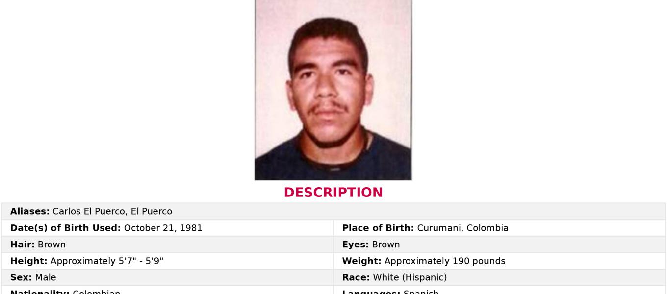 Colombian authorities arrested Yamit Picon-Rodriguez aka Choncha, 36, Jose Gabriel Alvarez-Ortiz aka Alex, 26, and Henry Trigos-Celon aka Moncho Picada, 43, based on a provisional arrest request of the United States.