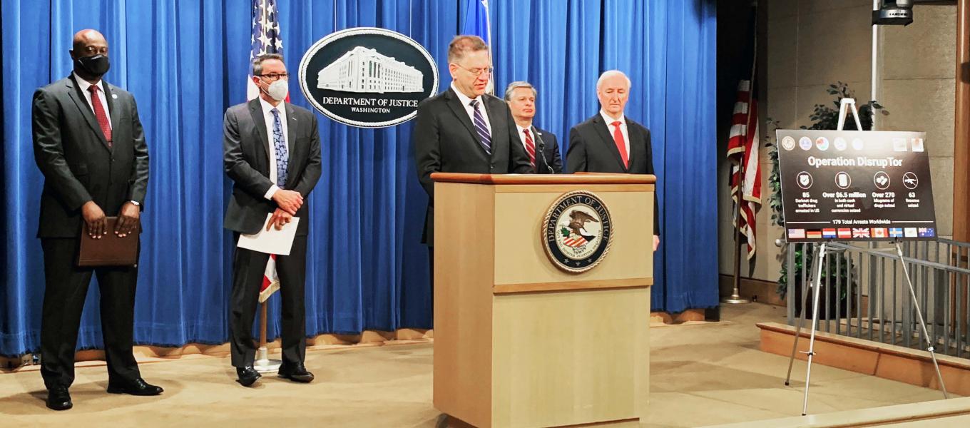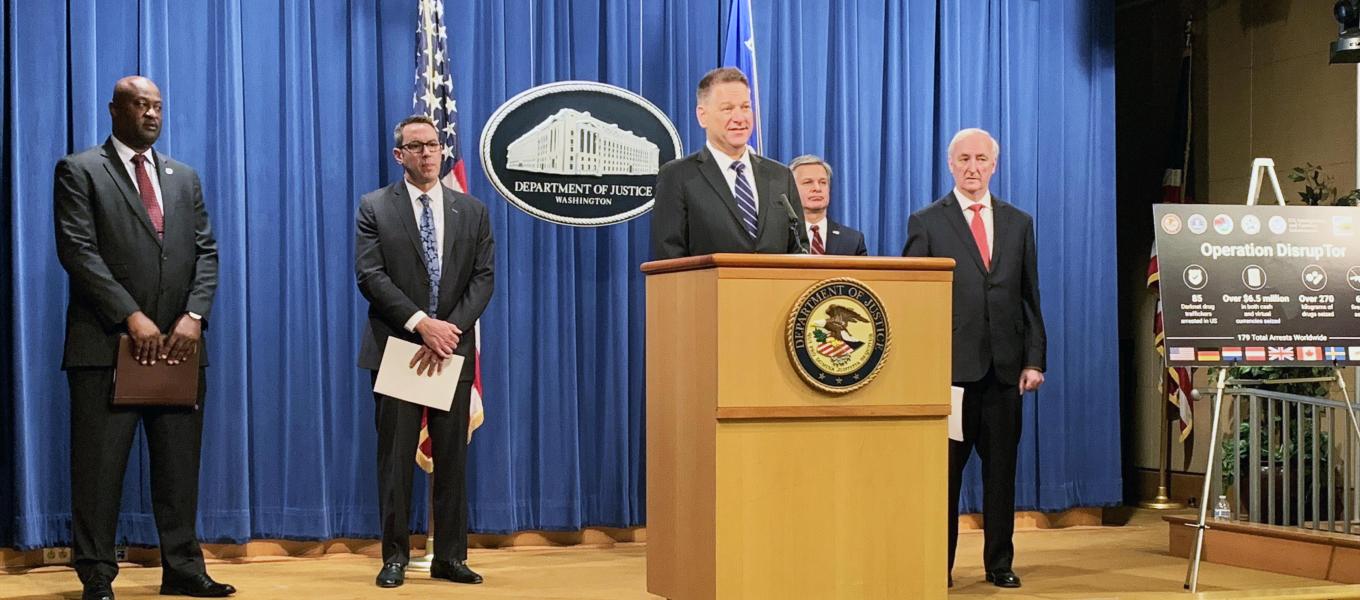 WASHINGTON – Today, the Department of Justice, through the Joint Criminal Opioid and Darknet Enforcement team, joined Europol to announce the results of Operation DisrupTor, a coordinated international effort to disrupt opioid trafficking on the Darknet. The operation, which was conducted across the United States and Europe, demonstrates the continued partnership between JCODE and Europol against the illegal sale of drugs and other illicit goods and services. Operation DisrupTor builds on the success of last year’s and the coordinated law enforcement , one of the largest illegal online markets on the dark web..