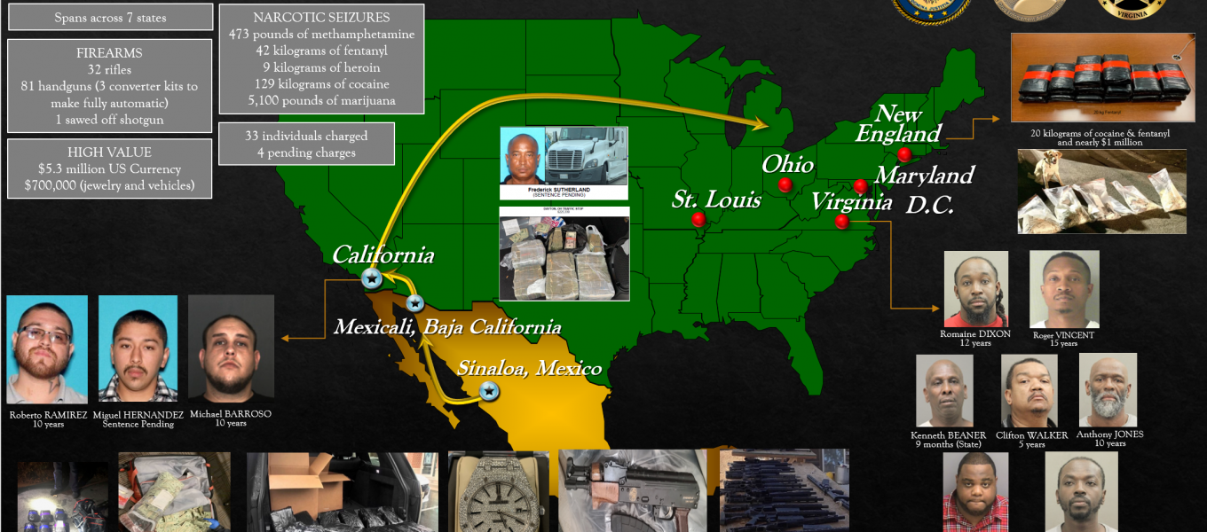 Since May 2017, investigations under Operation Angels Envy led to the identification and takedown of seven independent, violent drug trafficking organizations operating in the Washington D.C. metropolitan area; their Los Angeles-based transportation network, which used tractor-trailers and shipping crates to move ton quantities of methamphetamine, heroin, fentanyl, and other drugs across the country; and their Sinaloa Cartel supply cell. These drug trafficking organizations would then transfer profits and trafficked firearms back to the Sinaloa Cartel. Investigations into the takedown of the transportation network and supply cell led to the identification and takedown of other violent drug trafficking organizations in California, Missouri, Ohio, New England, and New York.