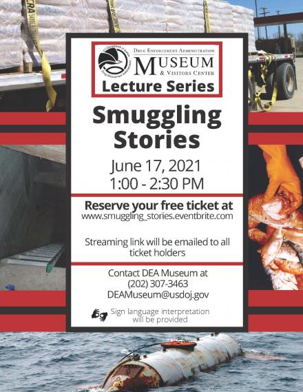 ARLINGTON, Va. – The Drug Enforcement Administration Museum and Visitors Center will present the next installment of its Lecture Series, “Disrupt, Dismantle, and Destroy: Smuggling Stories,” on June 17 at 1 p.m. Join host Josh Edmundson, the DEA Museum’s Curator of Education, for a live, virtual discussion with DEA experts about drug smuggling, a fundamental element of all major drug trafficking organizations’ business models and a critical component of DEA’s work.