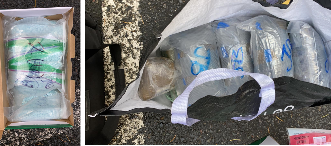 As the investigation continued, agents interdicted couriers transporting fentanyl pills and heroin to Oregon. They executed search warrants in Hillsboro, Portland, Tualatin, and Wilsonville, Oregon; Fresno and Hawaiian Gardens, California; and Las Vegas. In total, these enforcement actions resulted in the seizure of approximately 115,000 counterfeit oxycodone pills suspected to contain fentanyl and stamped “M/30”, 41 pounds of methamphetamine, and more than 57 pounds of heroin.