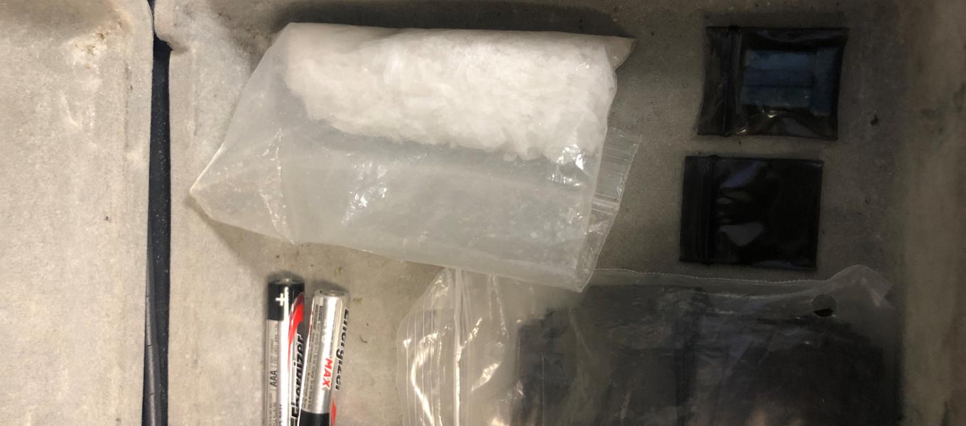 Upon further search, they found a lock box on the floorboard of the driver’s seat which contained meth as well as between two layers of socks on his left foot.