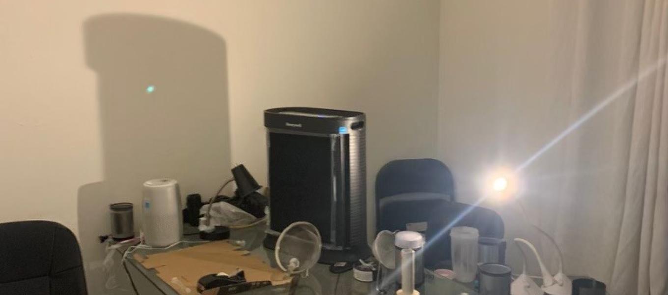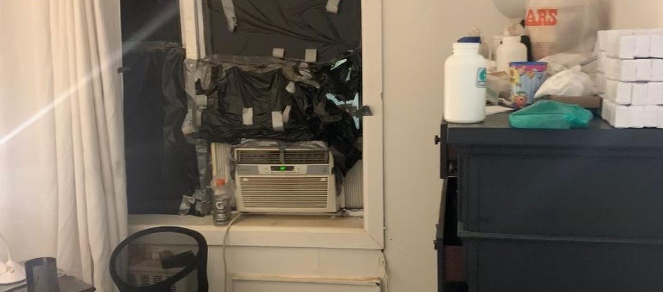 At approximately 11:00 p.m., agents and officers conducted a search of 2800 Heath Ave., Apt. 1J, Bronx, NY where one kilogram of suspected fentanyl, six pounds of loose powder, 10,000 filled glassines and materials used for packaging glassines such as grinders, scales, glassines, stamps and rubber bands were recovered. The fentanyl and packaging materials were found in the back bedroom which also contained a glass table set up for packaging narcotics and bright lights. The second bedroom contained additional paraphernalia along with a large TV monitor that was connected to a security camera to monitor the apartment. The apartment windows were taped up with large black plastic trash bags to ensure nothing was visible from the outside.