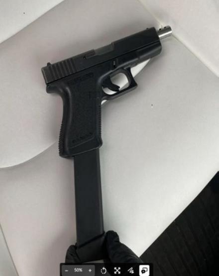 at the time of the second seizure -- a Glock handgun with an extended magazine was found with him in the car he was driving. He is prohibited from possessing firearms due to prior criminal convictions.