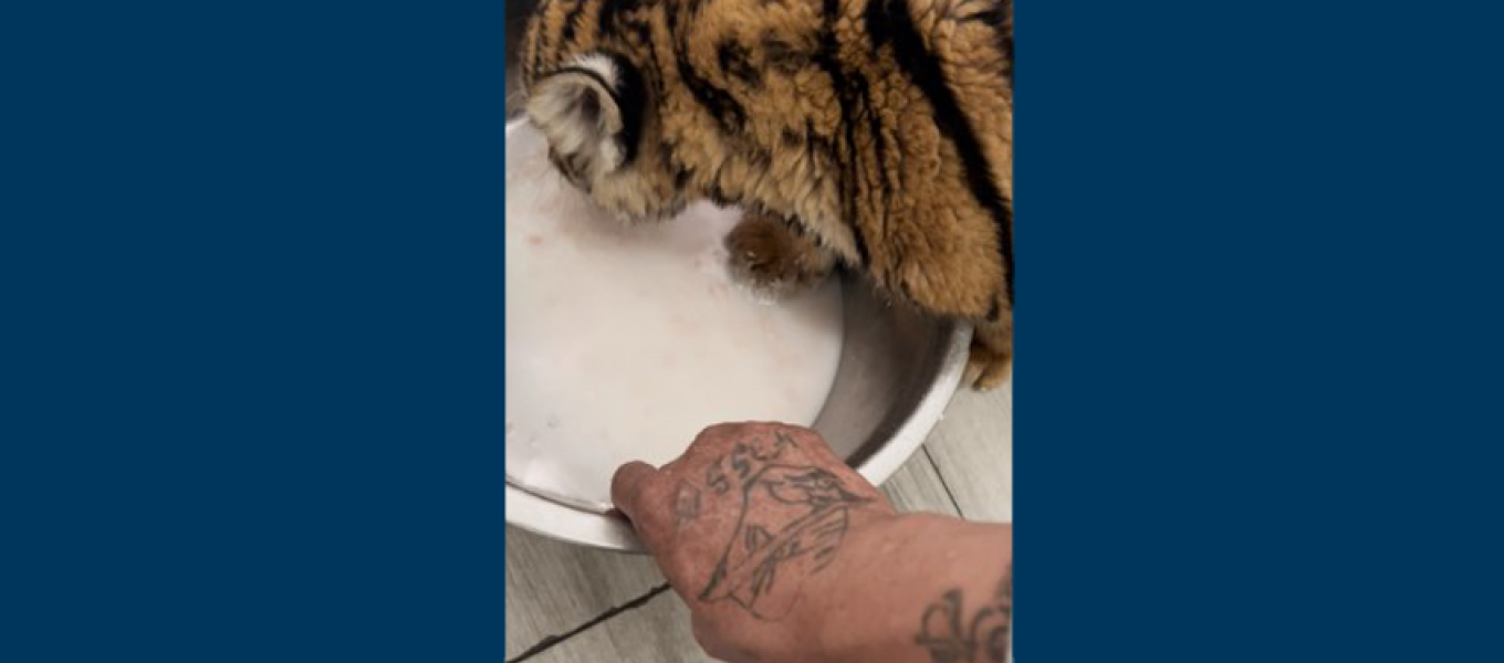 Photo of a tiger cub being fed by the suspect. The photo shows the suspect's distinctive tattoos.