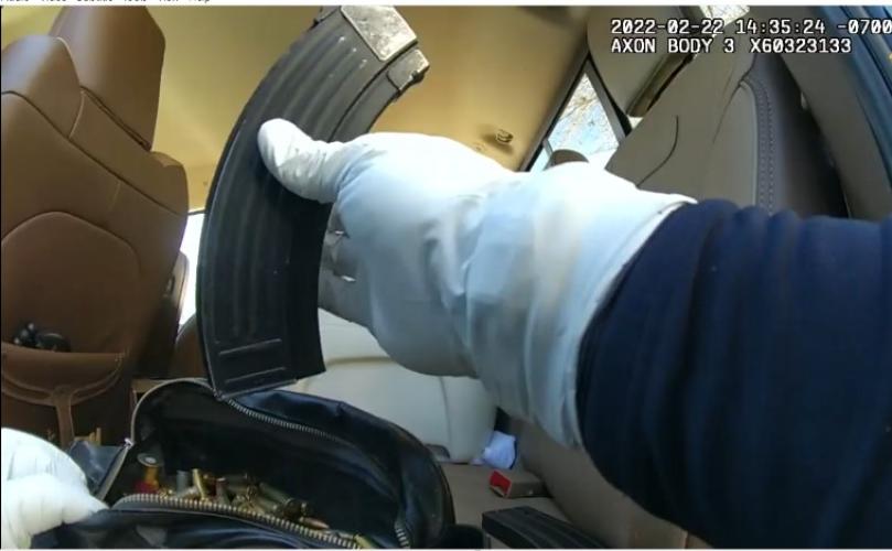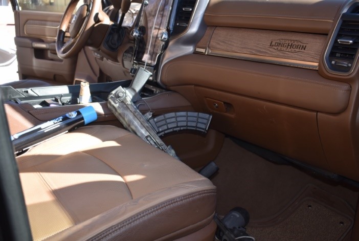 Photo of a loaded assault rife in the front passenger seat of Jimenez's vehicle.