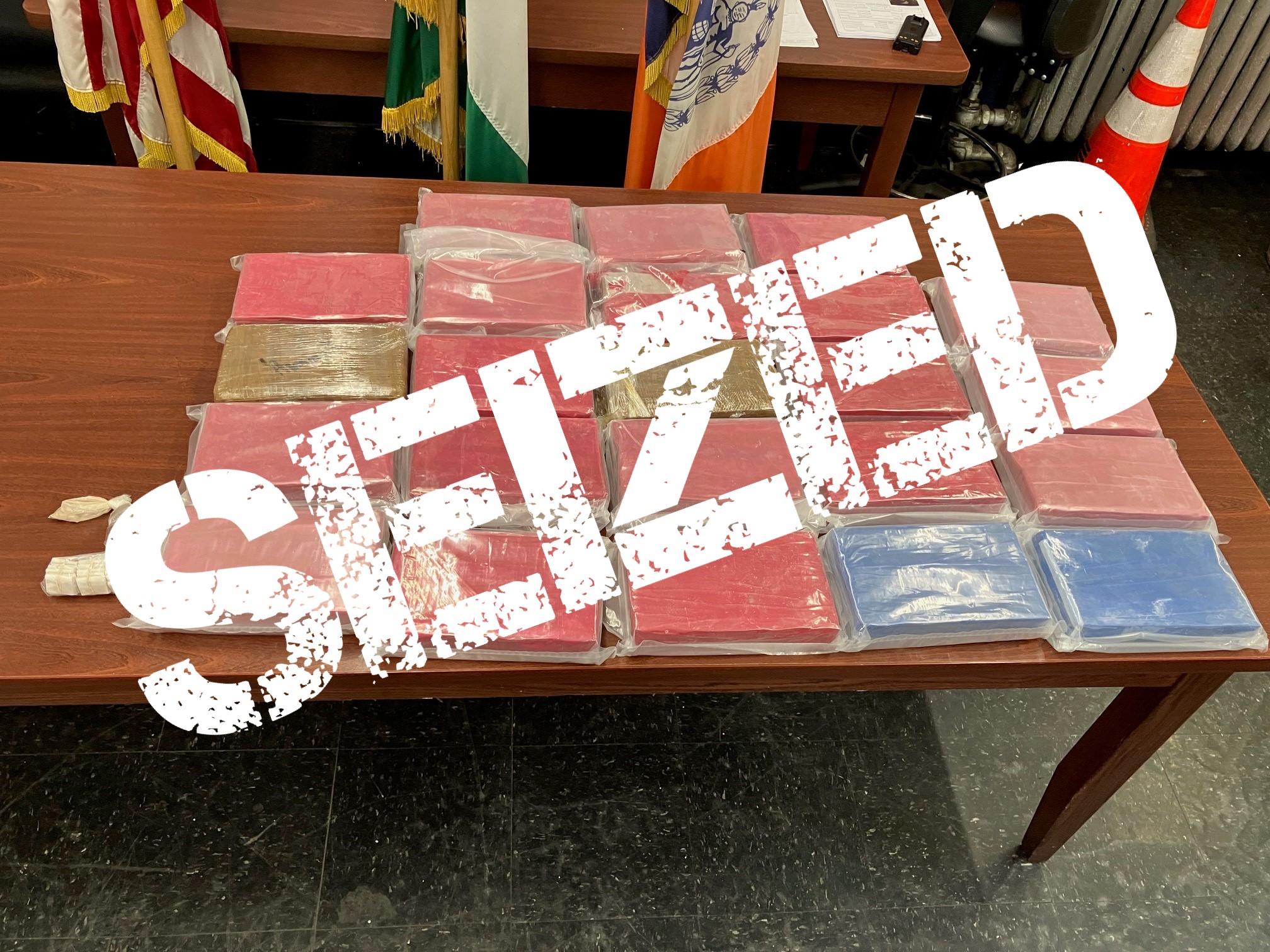 A Queens man was arraigned today on charges related to an investigation into interstate narcotics trafficking and the seizure of approximately 23 kilograms (50 pounds) of cocaine and packages of fentanyl, carrying a street value of more than $1 million. Members of the U.S. Drug Enforcement Administration (DEA) New Jersey Division tracked the vehicle from New Jersey to Middle Village, Queens.