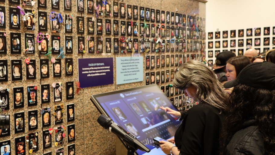 The 2024 National Family Summit on Fentanyl was a two-day event that provided families with the opportunity to attend workshops and take part in a dedication ceremony for the Faces of Fentanyl exhibit’s new interactive kiosk. The Faces of Fentanyl exhibit debuted in 2022 after Administrator Anne Milgram invited families to share photos to remember the lives lost to fentanyl. Since then, DEA has received more than 6,100 photographs that today line the walls of DEA Headquarters in Arlington, Virginia.  The exhibit is part of the DEA Museum and is open to the public. The interactive kiosk will provide additional capacity and include information about the threats of illicit fentanyl and fake pills.