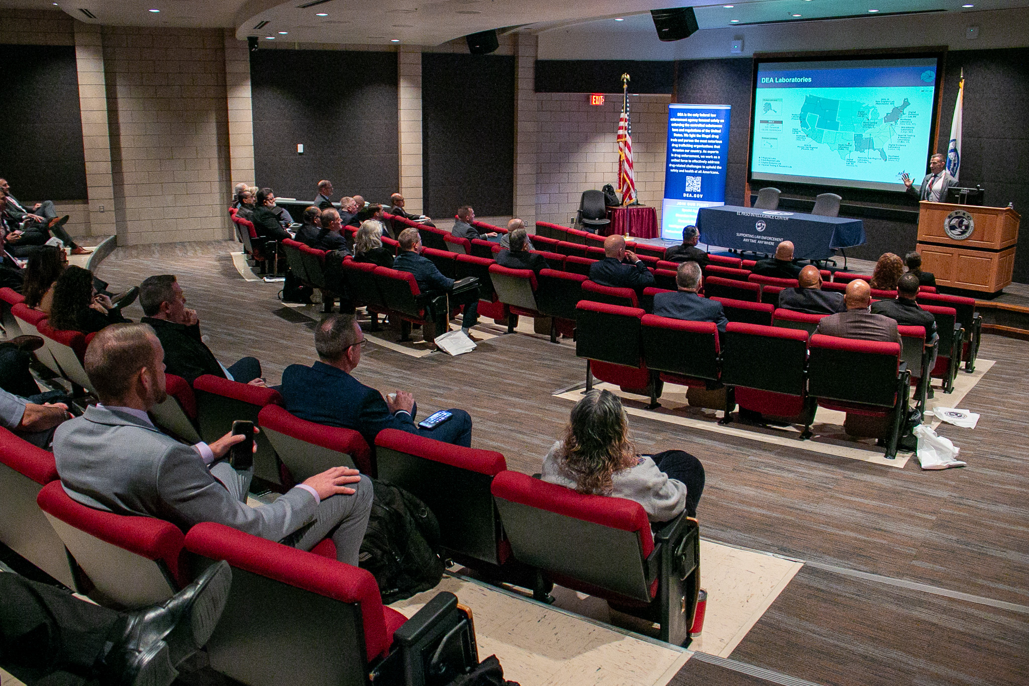 David Love, DEA Associate Deputy Assistant Administrator, speaks to representatives of local and state law enforcement agencies about the work of DEA Laboratories and Forensic Sciences.