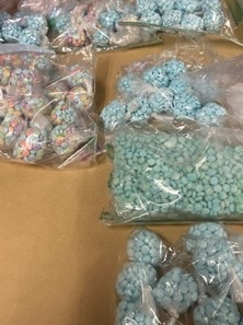Download Original ImageFentanyl seized during the investigation- blue M30s and rainbow fentanyl.