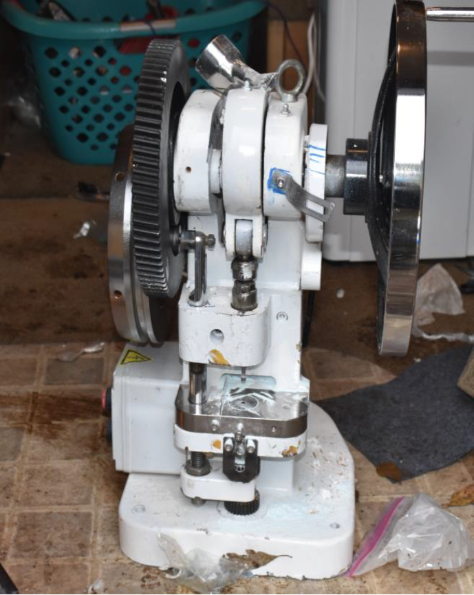 The stash house property also contained 23 firearms, including a shotgun kept where the drugs were stored, and the pills manufactured.
