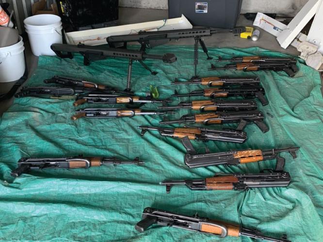 • Photo of 20 AK-47 type firearms and two .50 caliber rifles seized on August 21, 2023, in the Western District of Texas.