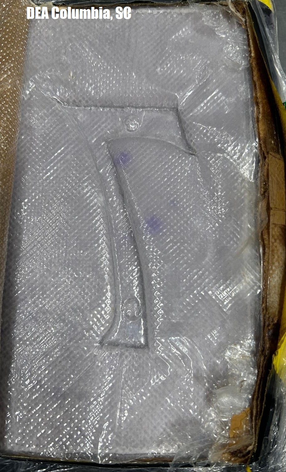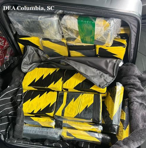 On July 1, DEA agents, Lexington County Sheriff's deputies, and South Carolina State Transport Police officers conducted two coordinated traffic stops in Lexington and Richland counties. Inside a tractor trailer that was transporting products with a legitimate business purpose, law enforcement also found large packages of illegal narcotics. Investigators believe the seized narcotics were sourced in Mexico and transported across the southern border.