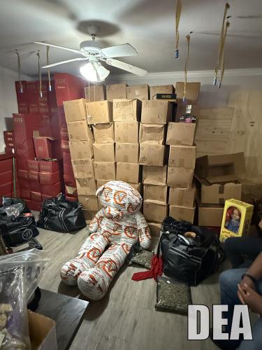 - The DEA Galveston Resident Office, in conjunction with the U.S. Marshals Service and Harris County Constables Office Precinct 2, seized 70,000 THC cartridges, 30,000 packages of THC edibles, 15 pounds of marijuana, and eleven firearms inside a home.