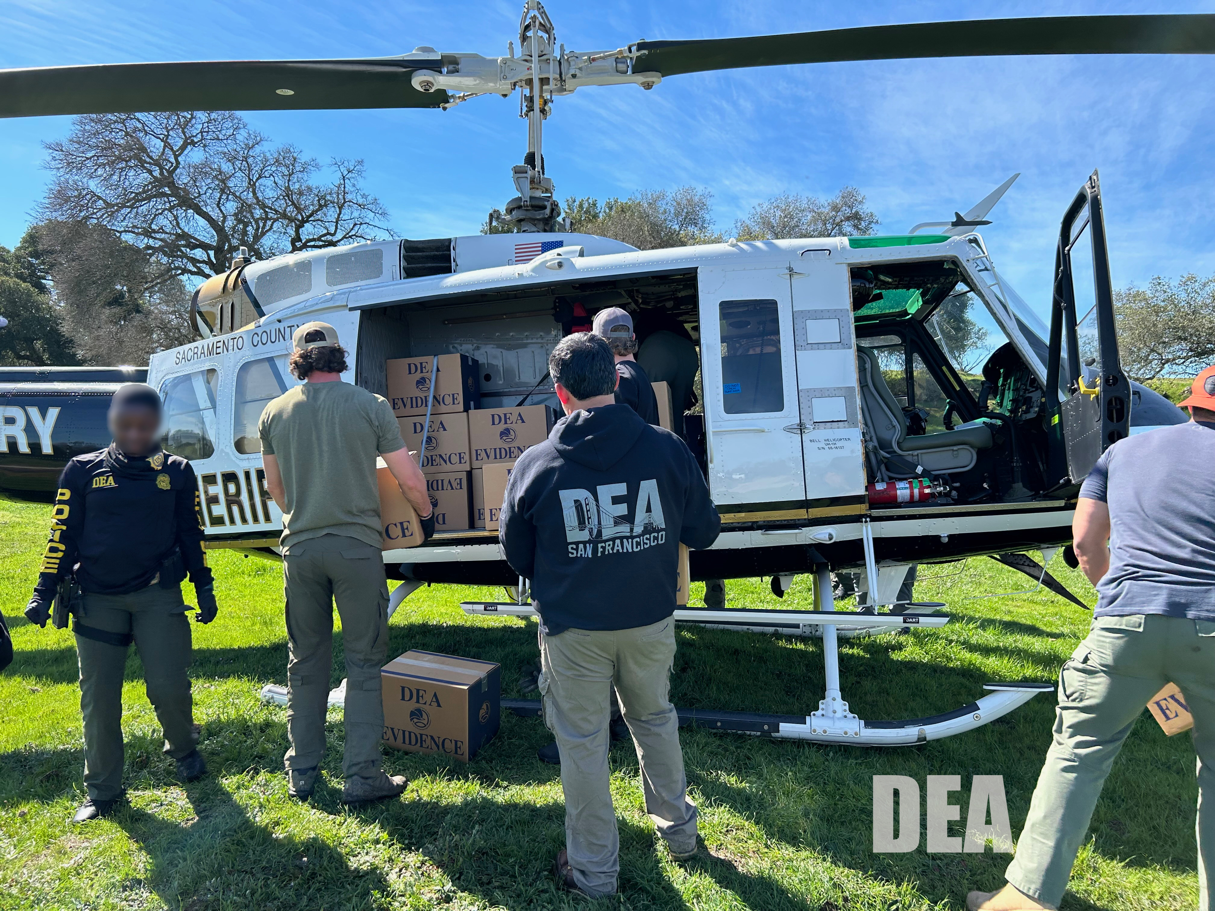 Investigator’s loading the narcotics onto the Sacramento County Sheriff’s Office helicopter.