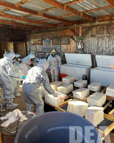 DEA Special Agents and Chemists dismantling the clandestine methamphetamine laboratory.