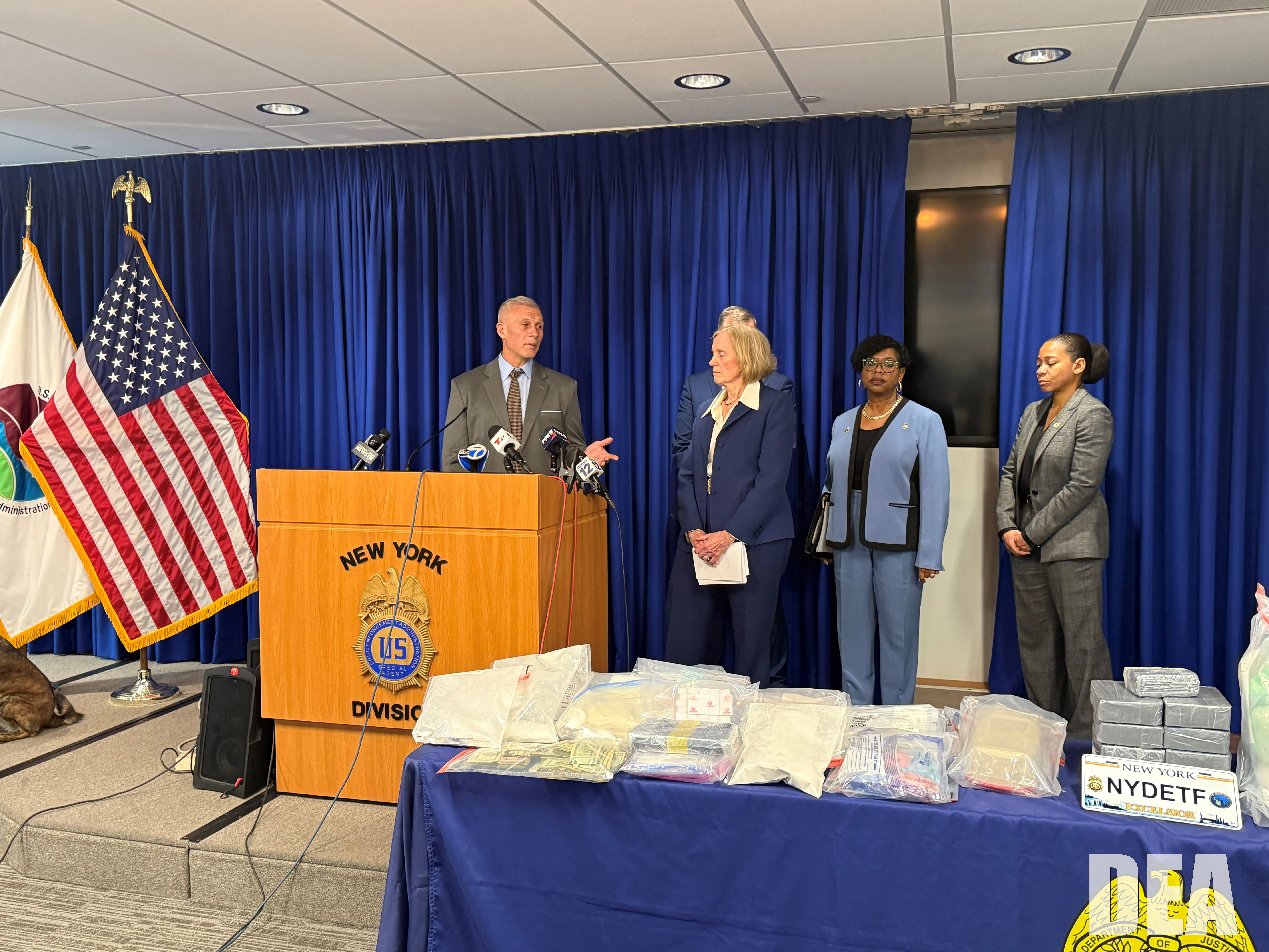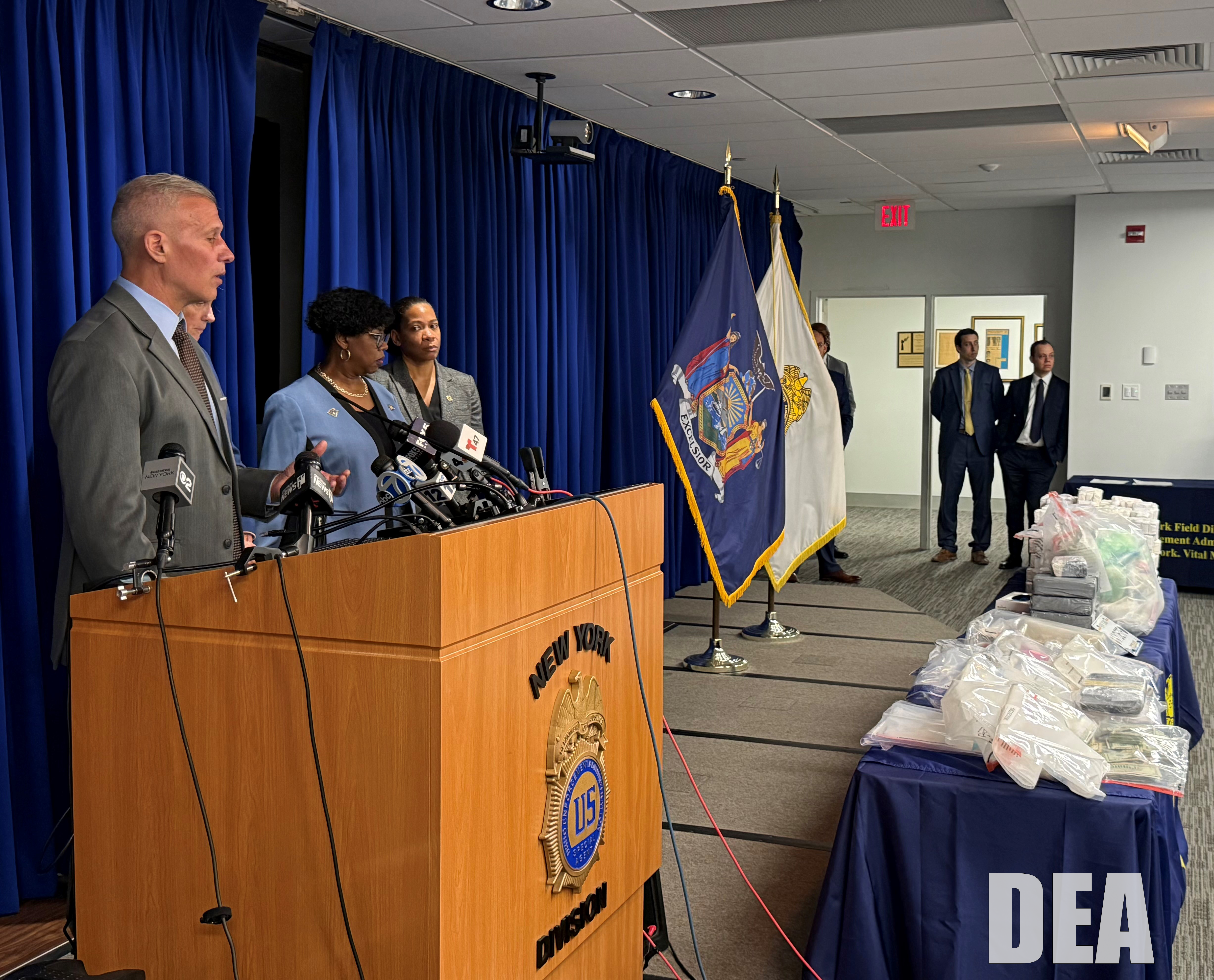 Christopher Roberts, Special Agent in Charge of the U.S. Drug Enforcement Administration’s (DEA) Task Force Division, Bridget G. Brennan, New York City’s Special Narcotics Prosecutor, Bronx District Attorney Darcel D. Clark, Manhattan District Attorney Alvin L. Bragg, Jr., New York City Police Commissioner Jessica S. Tisch, and New York State Police Superintendent Steven G. James announced the arrests following arraignments in Manhattan Criminal Court.