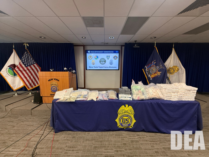 NEW YORK - Three large-scale, yet unrelated fentanyl packaging operations were dismantled in the Bronx and Manhattan on Wednesday, April 8, 2026. The U.S. Drug Enforcement Administration’s (DEA) New York Task Force Division (NYTFD), working with the New York City Special Narcotics Prosecutor’s Office, seized a combined total of approximately 42.5 kilograms of fentanyl (over 90 pounds), carrying an estimated street value of $7.5 million. More than $30,000 USC was also recovered. Two loaded guns were seized from a Washington Heights apartment used for narcotics packaging.