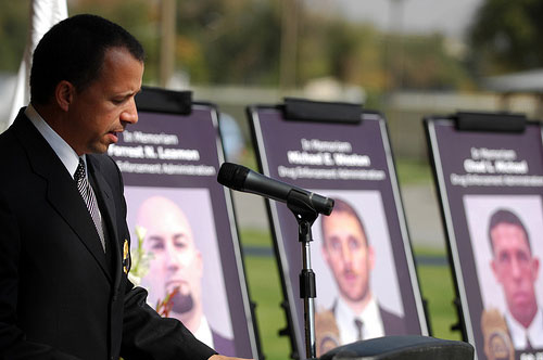 “These were not ordinary men. In a world where “ordinary” has become acceptable, these courageous human beings made “extraordinary” contributions. “They pledged an oath, they wore a badge, and they “stood the line.” “They were proud warriors performing a vital mission. They were more than just Special Agents, they were also special Americans. Like you, they volunteered to serve their country. Like you, they believed in the mission. Like you, they made the saving of lives their life’s work. “We are all saddened by this tragic event. DEA is an extremely tight family, and the death of these three brave agents is a devastating loss for us. We honor their service, bravery, and sacrifice. We all stand taller and fight harder for having known them. Their loss inspires us to even greater determination. “No expressions of grief can adequately convey the depth of the collective sorrow that we feel for their family and friends. The heartfelt prayers and deepest sympathies of everyone at DEA go out to them. “We owe our fallen heroes a debt of gratitude that can never be repaid, and we will forever cherish their call to service and carry their spirit in our hearts. “In closing, DEA would like to thank everyone, both civilian and military, who came to our aid by providing invaluable assistance and support during our time of need. DEA will forever be grateful. Thank you.”