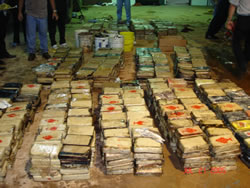 ton-quantity shipments of cocaine by sea +- on board speedboats --