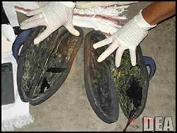 Sandals used by drug traffickers to smuggle heroin and cocaine. |