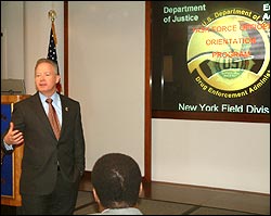 SAC Gilbride welcomes the new Task Force Officers at the NYDETF. |