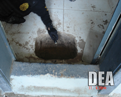 “Once again, team work led to the discovery of a tunnel. Although primitive in design, beginning in a drainage ditch, it was nevertheless responsible for pouring a poisonous product into our communities," said DEA Acting Special Agent in Charge Douglas Hebert. “DEA and its partners have denied drug traffickers another smuggling lane through Southern Arizona.” On July 10, 2007, the U.S. Border Patrol (USPB) observed a Jeep Grand Cherokee leaving the area of North Dunbar Street in Nogales, Arizona. Upon observing the USBP, the driver of the jeep attempted to flee from the agents and subsequently crashed his vehicle. Agents recovered approximately 540 pounds of marijuana from inside the jeep and around the crash site. Both the driver (identified as Braulio Rubalcaba-Valenzuela) and passenger (identified as David Olmedo-Carrasco) were arrested. Based on the information provided by USBP agents, DEA agents identified a possible stash house located at 20 North Dunbar St., Apartment #4. On July 11, 2007, DEA, assisted by the Nogales Police Department, executed a search warrant at the residence of 20 North Dunbar Street, Apartment #4, in Nogales, Arizona where they discovered the exit point of a subterranean tunnel interconnecting Nogales, AZ and Nogales, Sonora, MX. When agents entered the apartment, it was unoccupied and sparsely furnished. The tunnel was located inside the living room of the apartment, directly next to the front door. The shaft of the tunnel was reinforced in place with metal bars. The tunnel measures approximately two feet by three feet in diameter, and approximately six feet deep. Both Rubalcaba-Valenzuela and Olmedo-Carrasco were arraigned in federal court yesterday and charged with Possession with Intent to Distribute Marijuana, in violation of Title 21, United States Code, Sections 841(a)(1) and 841(b)(1)(B)(vii). They remain in custody. The tunnel will be permanently filled by DEA today. DEA, along with the Santa Cruz County Metro Task Force, U.S. Immigration and Customs Enforcement (ICE) and Border Patrol are coordinating the ongoing investigation into the tunnel. Digital photos of the tunnel can be viewed on www.dea.gov. Photos are also available upon request. # # # |