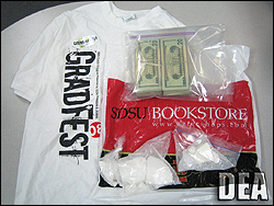 Cocaine and money seized by DEA agents on and off the campus of San Diego State University. |