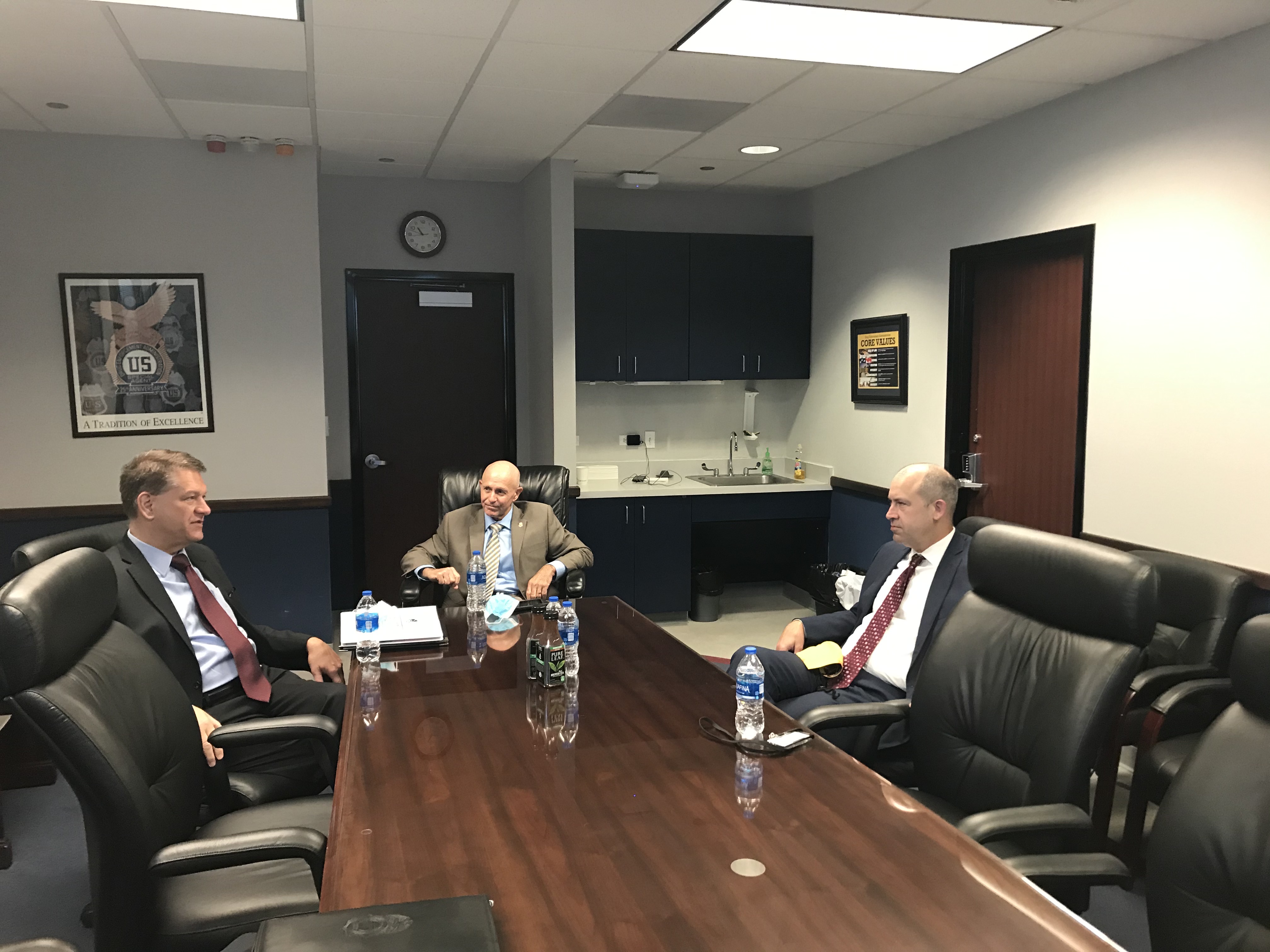 DEA’s Acting Administrator Timothy Shea visited the border between the U.S. and Mexico September 14, at a location near El Paso, Texas. Shea’s visit allowed him to talk with DEA’s federal, state, and local partners about the joint mission to deter drug trafficking at the Southwest border as well as the impact that the COVID-19 pandemic has had on operations. On September 15, Acting Administrator Shea met with the U.S. Attorney for New Mexico, conducted a round-table meeting with law enforcement representatives working in the El Paso area and visited to DEA’s El Paso Intelligence Center.