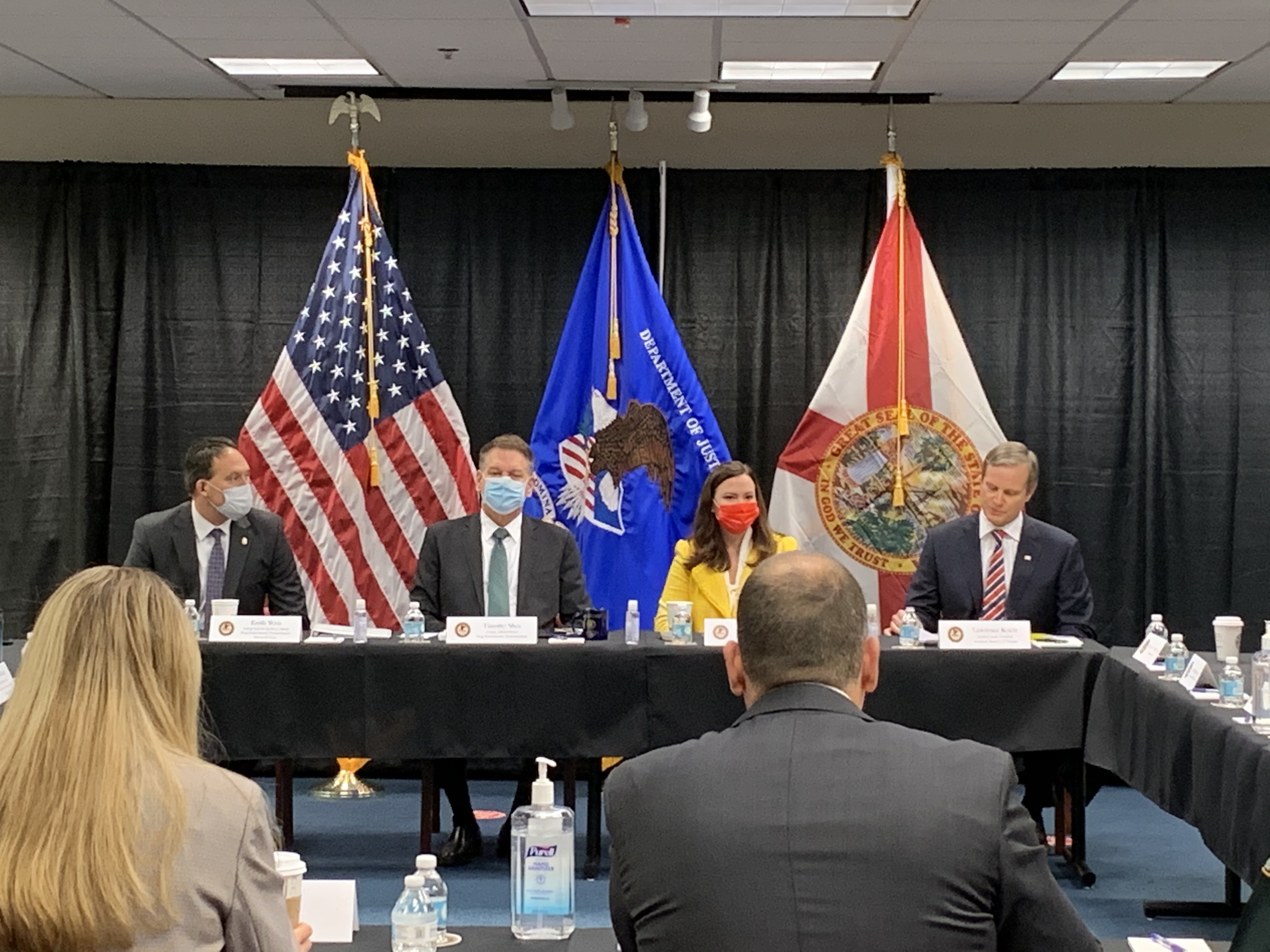 DEA’s Acting Administrator Timothy Shea visited Tallahassee, Florida Oct 6, to participate in a law enforcement round table with Florida’s Attorney General, Ashley Moody, the U.S. Attorney for the Northern District of Florida, Lawrence Keefe and the Acting Special Agent in Charge of DEA’s Miami Field Division, Keith Weis. The roundtable focused on the illegal drug threat in Northern Florida and DEA’s partnerships with state and local law enforcement. Following the round table, Shea, Moody, Keefe and Weis participated in a pooled press conference where they recognized the work of DEA Special Agent Justin Duralia and members of the U.S. Attorney’s office who helped disrupt and dismantle significant methamphetamine drug trafficking organizations in North Florida. Additionally, in Atlanta, DEA’s Operation Crystal Shield took down a major source of supply of methamphetamine for North Florida. A link to his comments is here. Acting Administrator Shea wrapped up his day with a visit to the DEA’s Regional Office in Tallahassee.